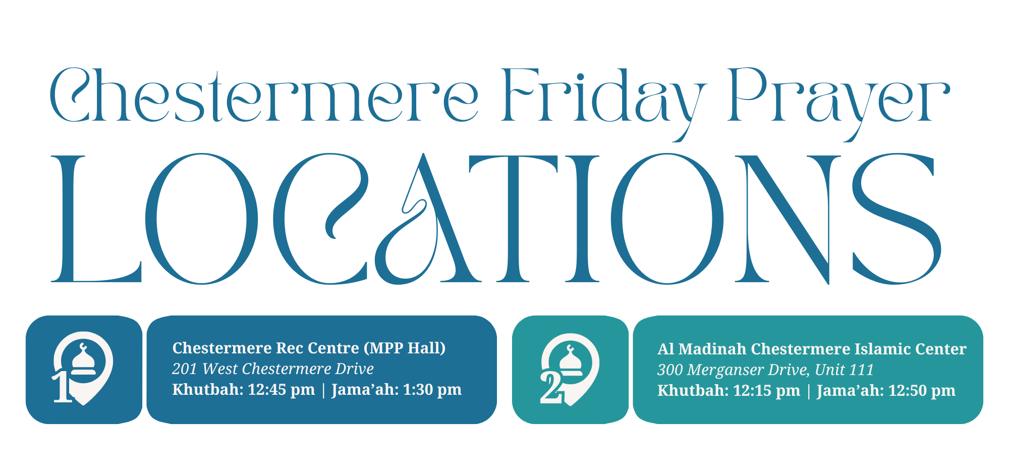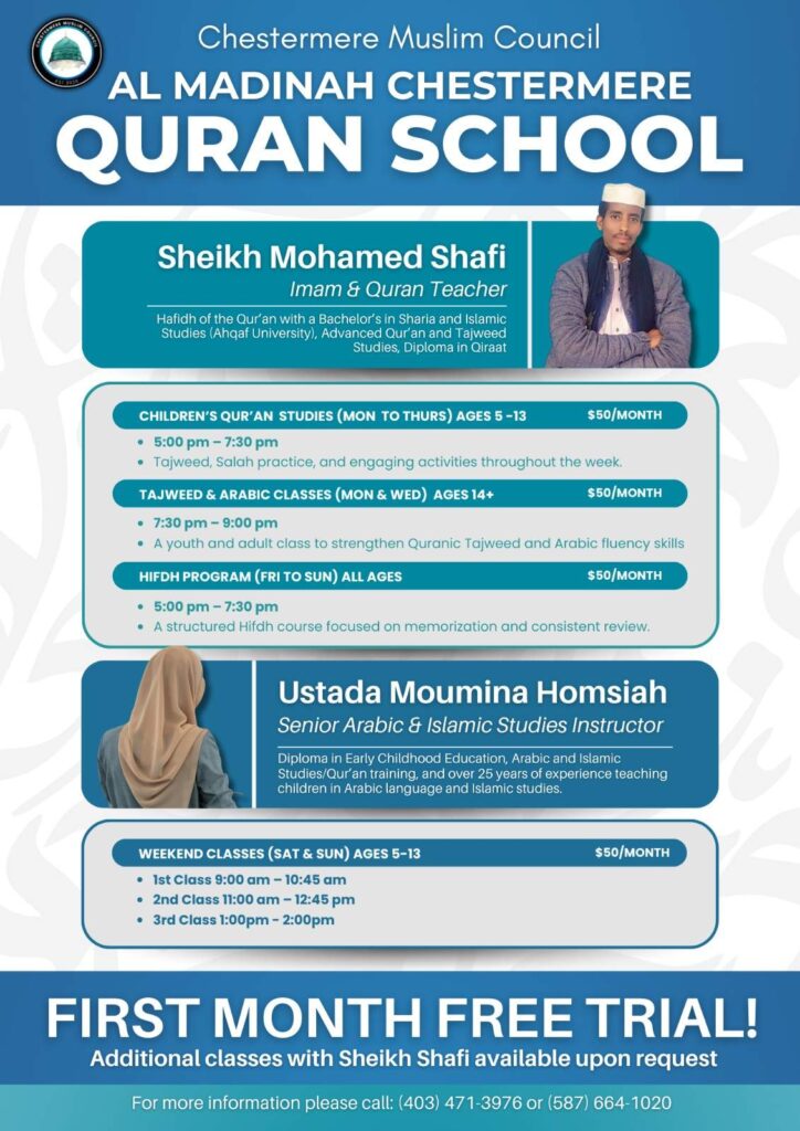 Based out of the Al-Madinah Chestermere Islamic Center, the first local Islamic Center in Chestermere, The Chestermere Muslim Council (CMC) is the first registered non-profit Muslim charity in the City of Chestermere. Built by the community, for the community, the CMC is committed to serving both the Muslim and non-Muslim residents of Chestermere, Strathmore, Calgary and surrounding areas.